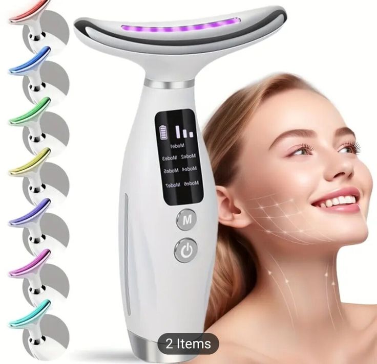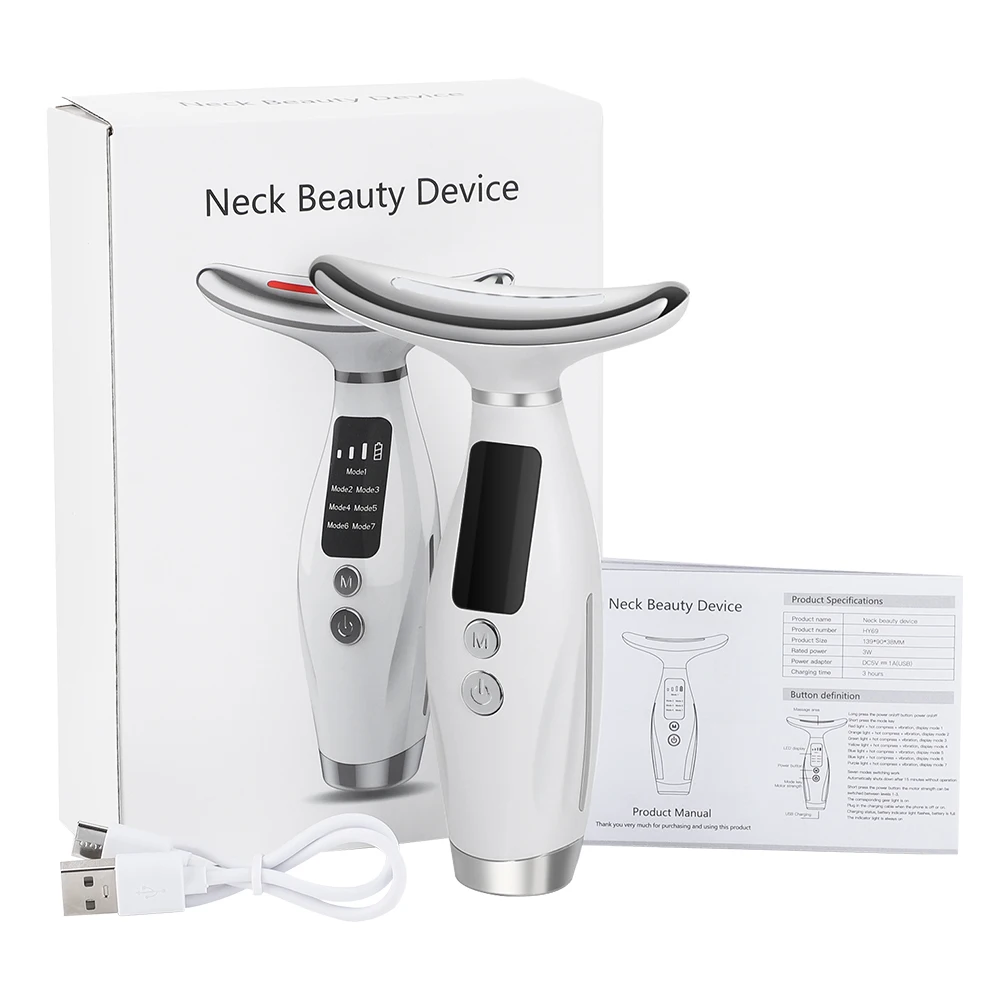 1. This neck face lifting massager features 7-color LED technology (Red Light: Stimulates collagen production. Orange Light: Relaxes skin & accelerates cell growth/healing. Green Light: Soothes and calms irritation. Yellow Light: Provides neutral lighting. Cyan Light: Reduces muscle twitching and capillary swelling. Blue Light: Improves microcirculation. Violet Light: Enhances lymphatic drainage.) to target different skin concerns for a more radiant and rejuvenated appearance.